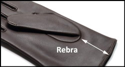 Die Länge der Handschuhe (Rebra) wird ab dem unteren Rand des Daumenlochs (Enlevure) bis zum Handschuhsaum gemessen. Die Rebralänge wird in französischem Zoll angegeben.